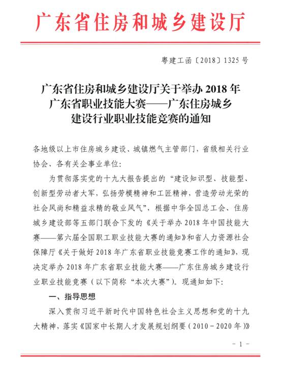 转发《广东省住房和城乡建设厅关于举办2018年广东省职业技能大赛——广东住房城乡建设行业职能技能竞赛的通知