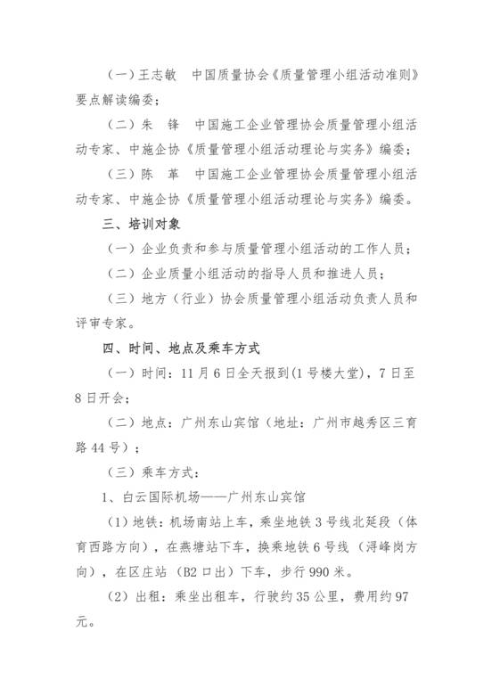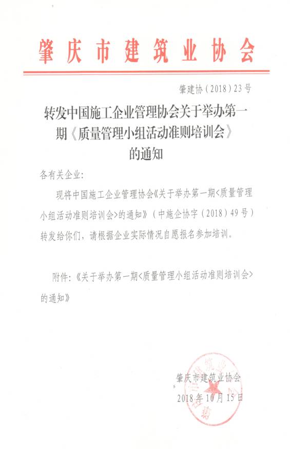 转发中国施工企业管理协会关于举办第一期《质量管理小组活动准则培训会》