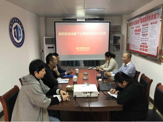 2021年11月18日下午,广东肇庆信基产业投资有限公司到协会交流调研,翟伟颂会长及秘书处人员参加了会议。广东肇庆信基产业投资有限公司向协会介绍了公司基本情况以及信基·肇庆智能制造产业链科技创新中心项目的建设情况、发展理念。翟伟颂会长对广东肇庆信基产业投资有限公司一行表示欢迎,对公司助力肇庆端州产业升级表示赞赏及支持,双方并就该项目进行了深度交流。 交流现场
