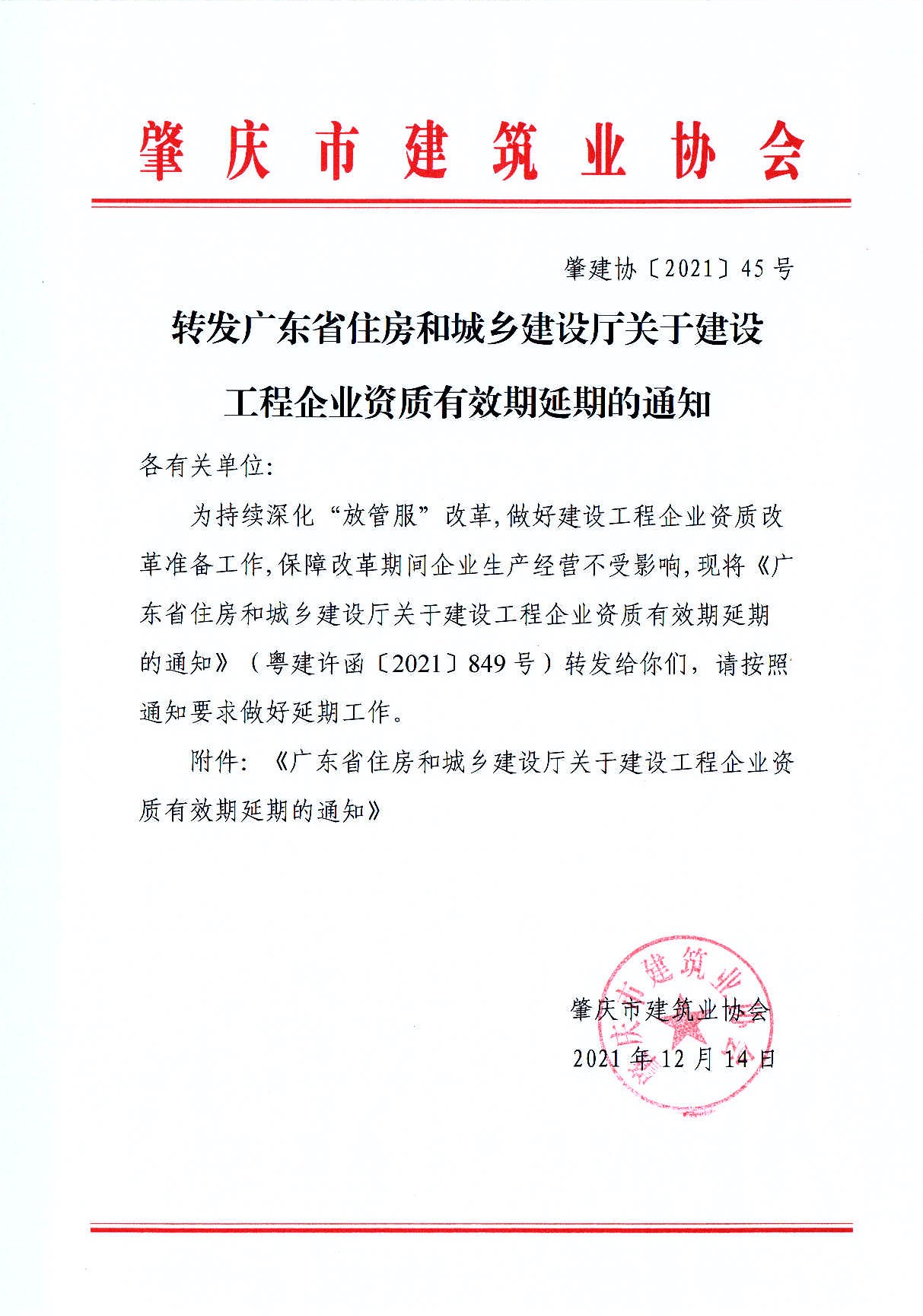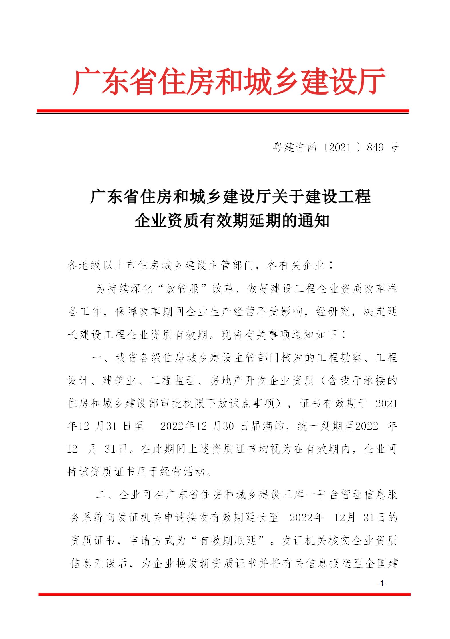 转发广东省住房和城乡建设厅关于建设工程企业资质有效期延期的通知