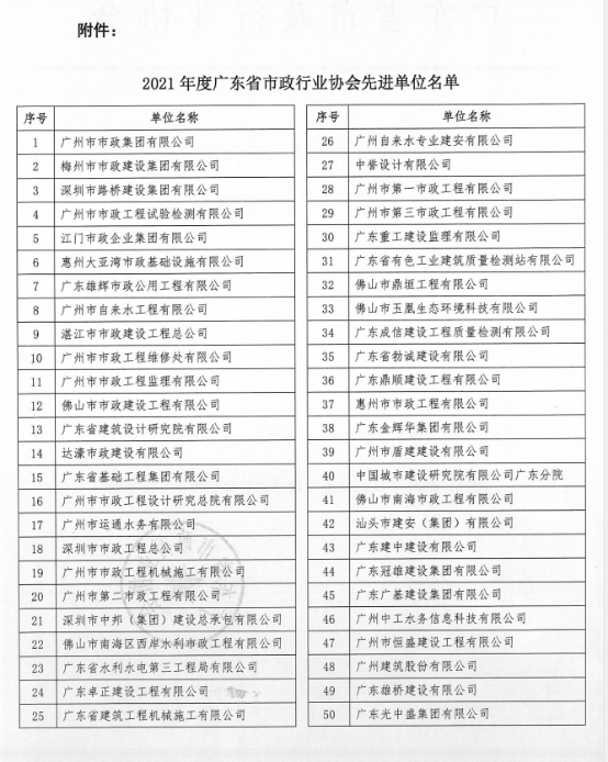 年度广东省市政行业协会先进单位,衷心感谢